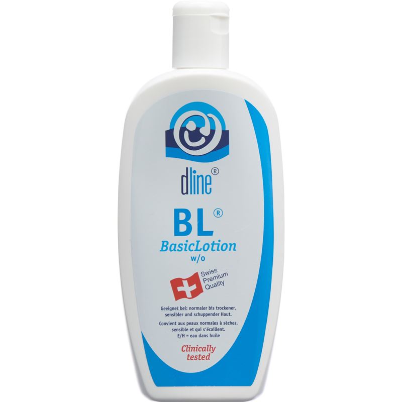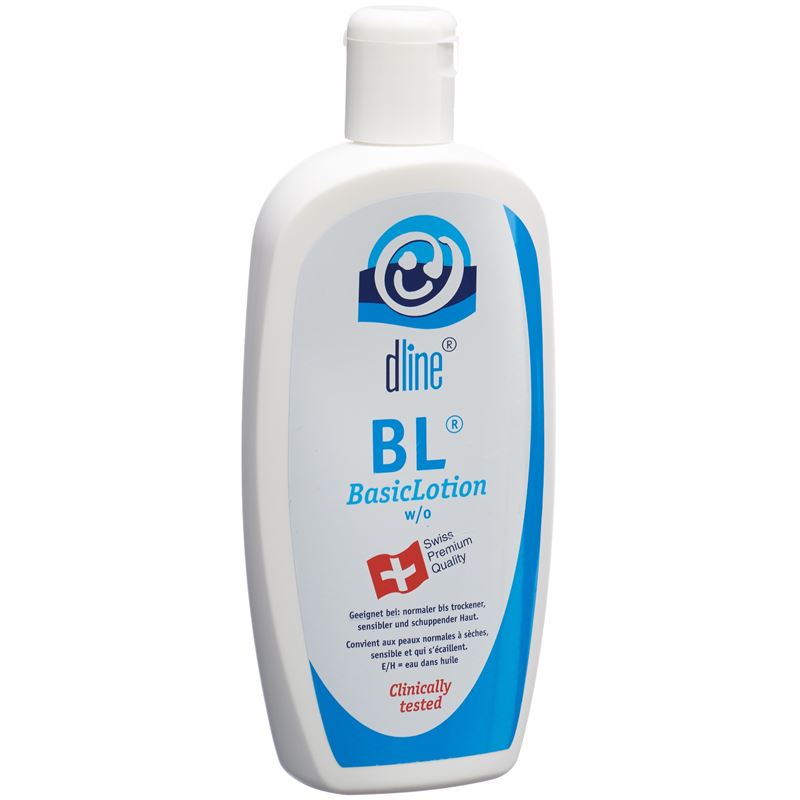 - Stabilisiert den Lipid- und Feuchtigkeitshaushalt normaler bis trockener, sensibler und schuppender Haut - Vermindert durch natürliche Feuchthaltefaktoren die Austrockunung der Haut - Hochwertige Inhaltsstoffe: Aloe Vera, Urea, Mandelöl, Vitamin E - Ohne Farbstoffe, ohne typische Konservierungstoffe Die BL®-BasicLotion kann sehr gut für die Hände verwendet werden. Bei trockener und rissiger Haut an den Händen wird empfohlen, über Nacht die NCR®- NutrientCream anzuwenden und darüber Baumwollhandschuhe zu tragen, um den pflegenden Effekt noch zu verstärken. Spezielles: Die BL®-BasicLotion kann bei leicht trockener bis normaler Haut direkt auf die feuchte Haut aufgetragen werden (verstärkter Kühleffekt). Die entsprechende Lotion auf die trockenen Handflächen aufbringen, verstreichen und sodann auf die benetzte, feuchte Haut in kreisenden Bewegungen einmassieren. Die dline®-Produkte können vom Kindesalter an, an jeder Körperregion, so oft wie nötig eingesetzt werden. Die dline®-Hautpflegeprodukte sind hochkonzentriert. Es sollten deshalb nur geringe Mengen pro Anwendung verwendet werden. Durch die Lipidbasis ist das Einmassieren subjektiv etwas «fettig». Bei korrekter Menge ziehen die Produkte jedoch rasch in die Hornschicht ein und hinterlassen einen angenehmen Pflege(Schutz)film welcher im Regelfall über Stunden hält. Positiver Nebeneffekt: Sie benötigen für die gleiche Hautfläche gut 2/3 weniger vom Produkt wenn die Haut noch feucht vom Duschen/Baden ist. Das Anziehen der Kleidung ist nach ca. 3 - 5 Minuten problemlos möglich, wenn Sie die Produkte phasengerecht verwenden! Evolutionsformel: 3% Glycerin 3% Urea 1% Vitamin E