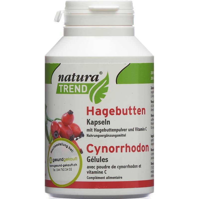 Hagebuttenfruchtpulver 55% (Frankreich), Überzugsmittel (Hydroxypropylmethylcellulose), Stärke, Vitamin C (L-Ascorbinsäure)..