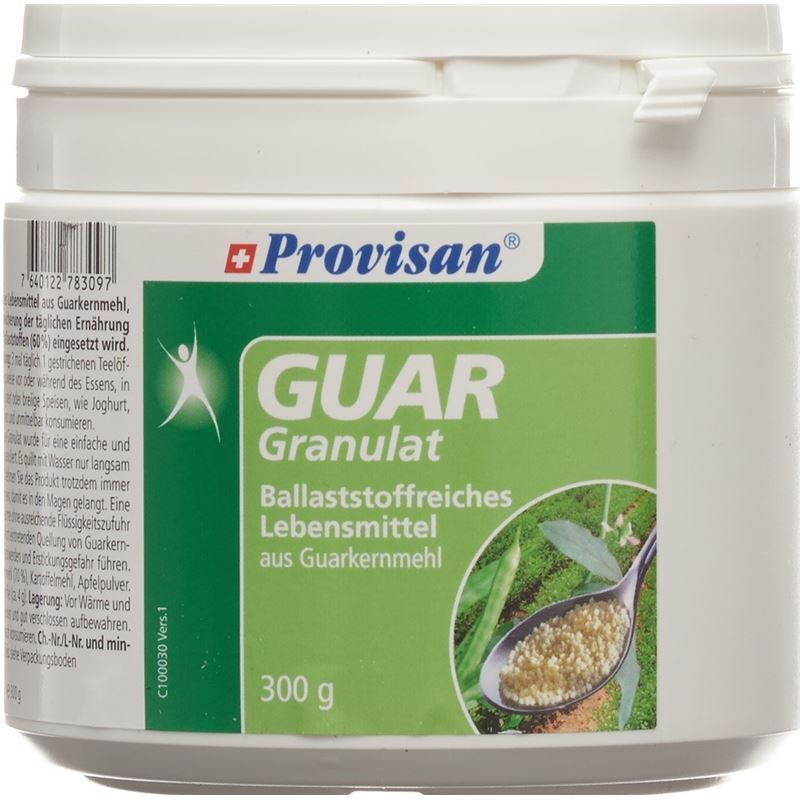 Das Provisan Guar Granulat aus Guarkernmehl ist ein ballaststoffreiches Lebensmittel, welches zur Anreicherung der täglichen Ernährung mit wertvollen Ballaststoffen eingesetzt wird.