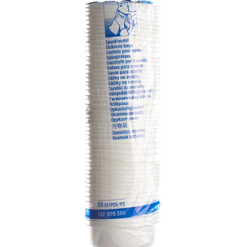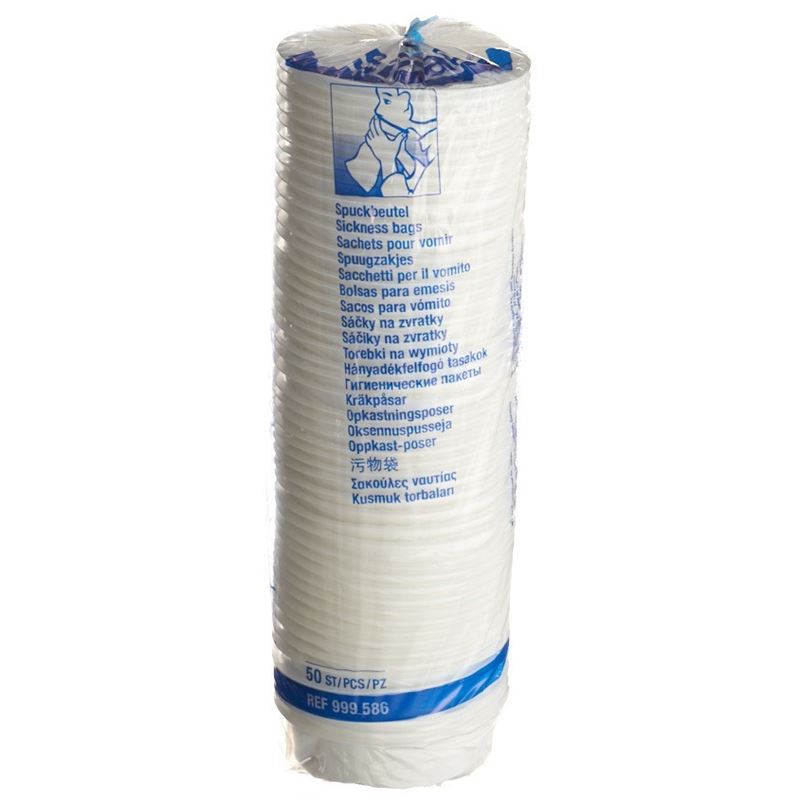 Einweg-Auffangbeutel bei Übelkeit als wirtschaftliche Alternative zur Nierenschale. Aus Polyethylen mit sehr hoher Aufnahmekapazität von ca. 1 Liter. Der Abschlussring hat einen Durchmesser von 11 cm und garantiert eine hygienische Anwendung. Der sichere Verschluss verhindert Geruchsbelästigung und Auslaufen.